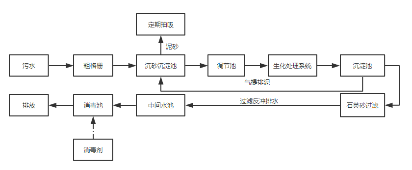 針對工廠的生活污水回用,主要側(cè)重于景觀水以及沖廁、綠化用水等。一般來說生活污水處理工藝機理如下:生物膜法一般用于水量較小,水質(zhì)較為穩(wěn)定,濃度不是很高的低濃度污水,同時由于生物膜培養(yǎng)較快(一般夏天為3-7天,冬天為10-15天),系統(tǒng)調(diào)試好后運行穩(wěn)定,可操作性較強,對操作人員的要求較低;活性污泥法一般用于水量較大,水質(zhì)有一定的波動,中等濃度或高濃度水質(zhì),同時由于活性污泥培養(yǎng)時間較長(一般需要30天左右),系統(tǒng)運行中操作管理較繁,對操作人員有一定的要求,適用于大中型污水處理項目,如城市污水處理廠。一般來說生化處理工藝(缺氧+好氧)采用生物膜法處理工藝。生物膜法處理之后后續(xù)處理一般做深度處理,主要是去除殘余的懸浮物以及后續(xù)的水質(zhì)消毒。